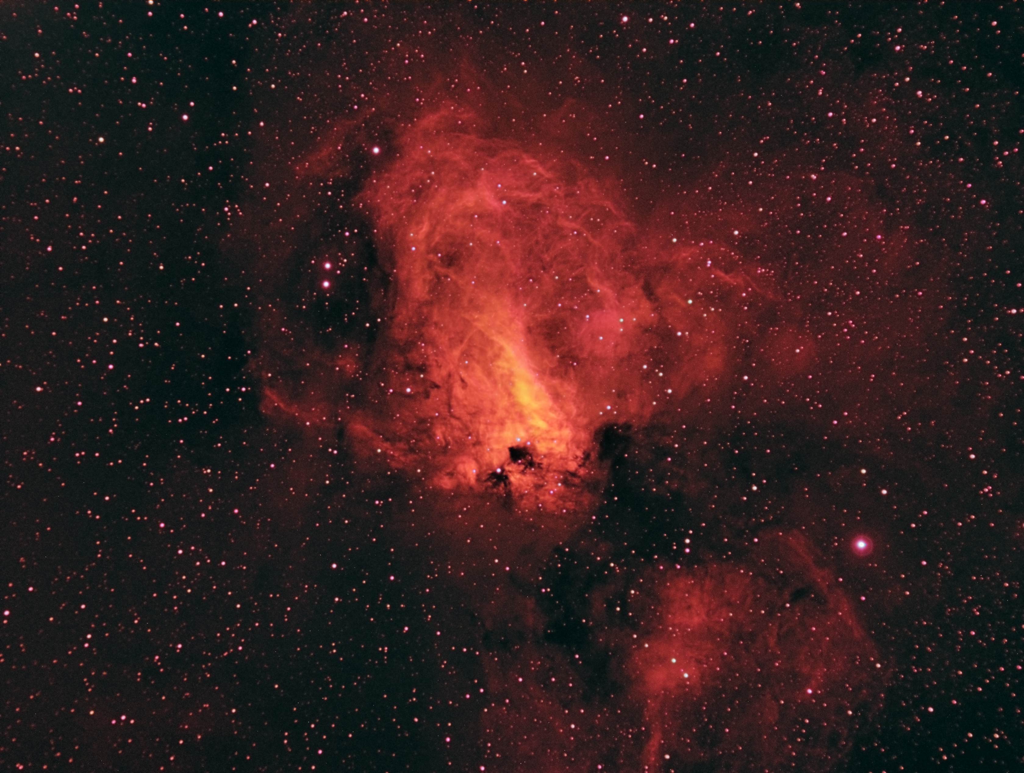 Frames 4 x Ha x 10 m, 4 x OIII x 12 m (2×2 bin), 4 x SII x 15 min (2x2bin)